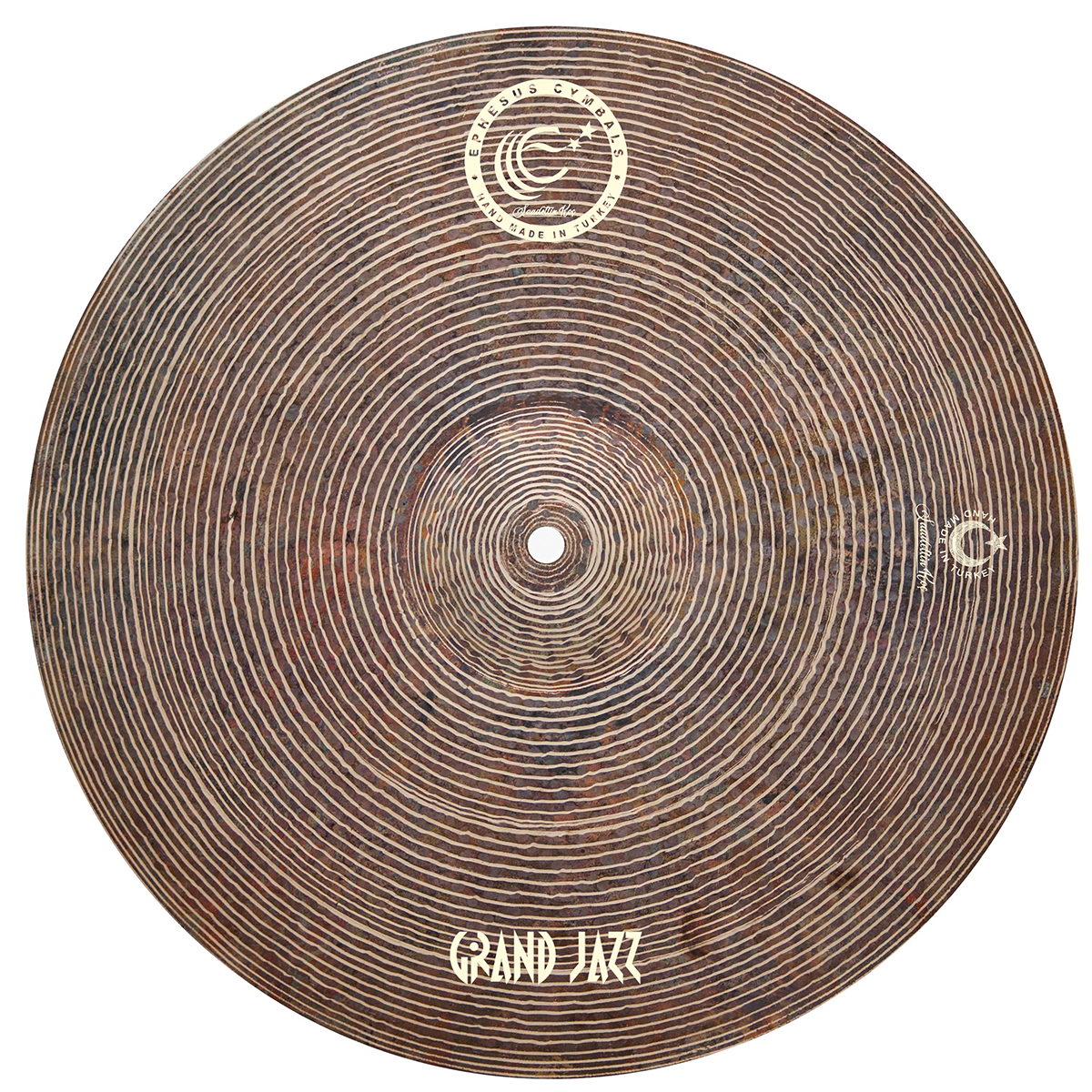 GRANDJAZZ SERIES; Has a soft dark and dry sound. Also, this cym- bal has an eye catching appearance with, lathing and hammering. Stick definition is very well,